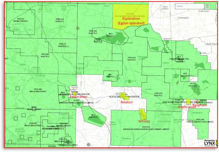 Our British East Midlands assets portfolio includes three producing licences and three exploration licences in Lincolnshire. The producing licences are: Whisby: producing circa 100 bbls per day Newton on Trent: currently shut-in, development plan considered for 2022 Reepham: currently shut-in, development plan considered for 2023
